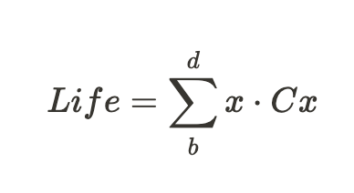 Put mathematically: my life equals the sum of my own experiences from birth to death, times my contribution to improving the experiences of others.
